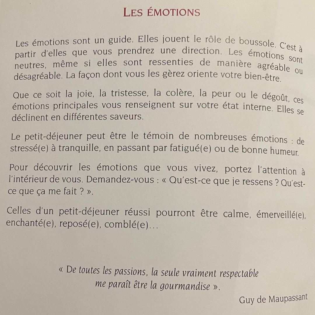 Chacun de ces items, tu les retrouves dans la deuxième partie , mis en pratique autour d’un petit- déjeuner de manière à ce que tu puisses t’approprier ce qui se joue aussi à table et ainsi te réconcilier avec ta gourmandise
