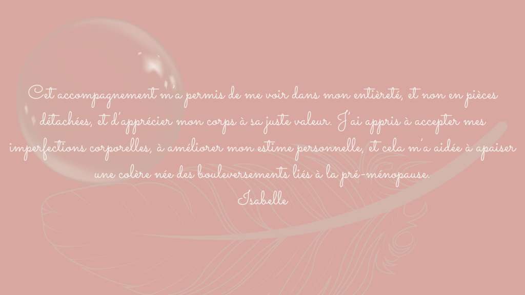 Je travaille avec les femmes sensibles, intuitives, reliées à la beauté, épicuriennes, qui ont trop longtemps vécu dans la lutte et qui aspirent à une autre manière d’habiter leur corps : plus douce, plus libre, plus vraie.